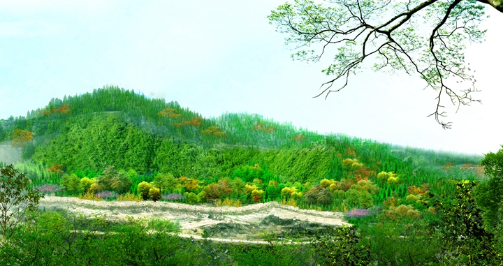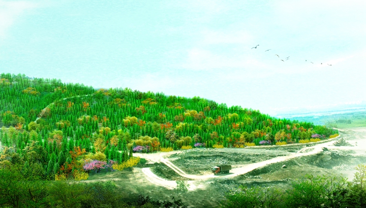 工程規(guī)模:該工程位于高新區(qū)孫村立交東南,在建蓮花山殯儀館西側。主要包括殯儀館西側荒山、采石跡地,總綠化面積約172.6畝。